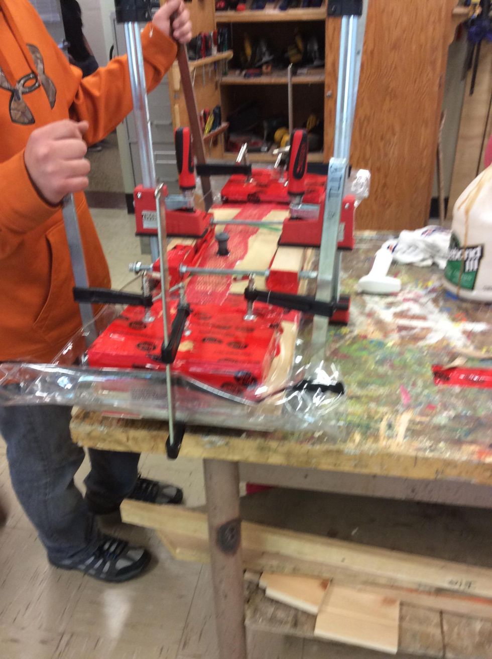 Once you got a lot of the air out you need to clamp it down to get the shape of the long board.