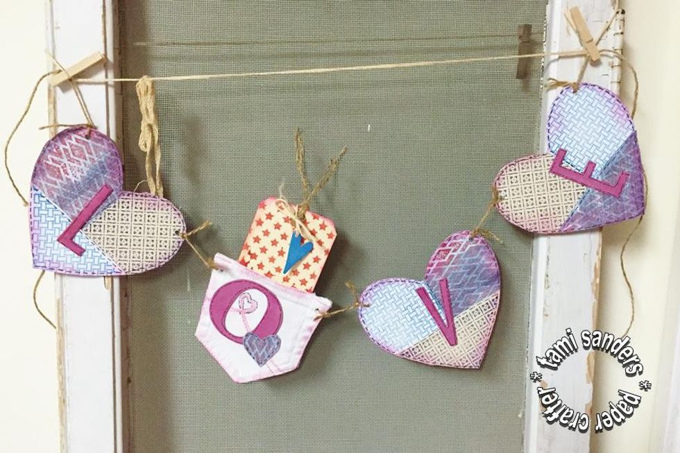 use Stylus & Tip to distress edges of hearts using Berry Ink. heat set.