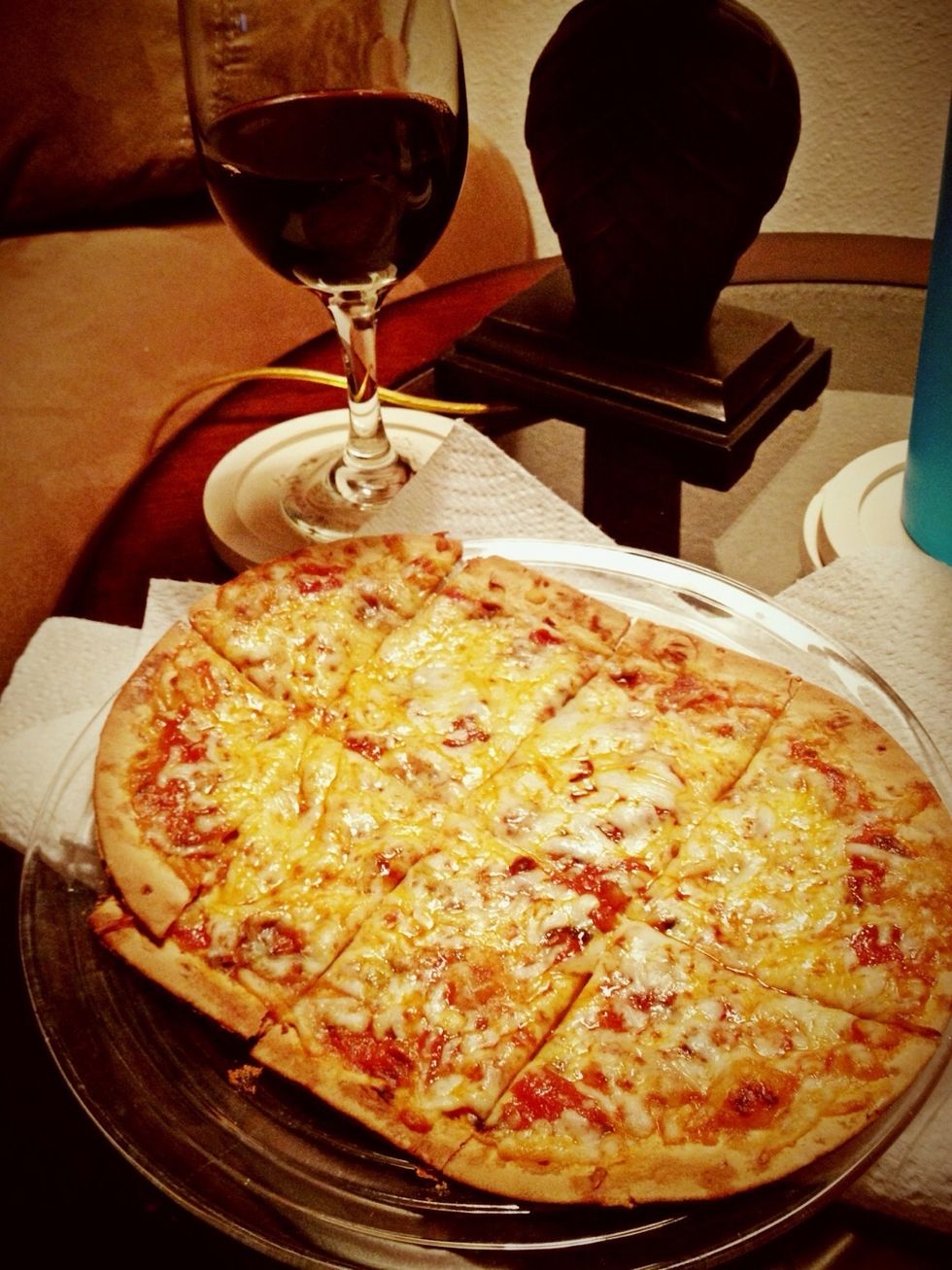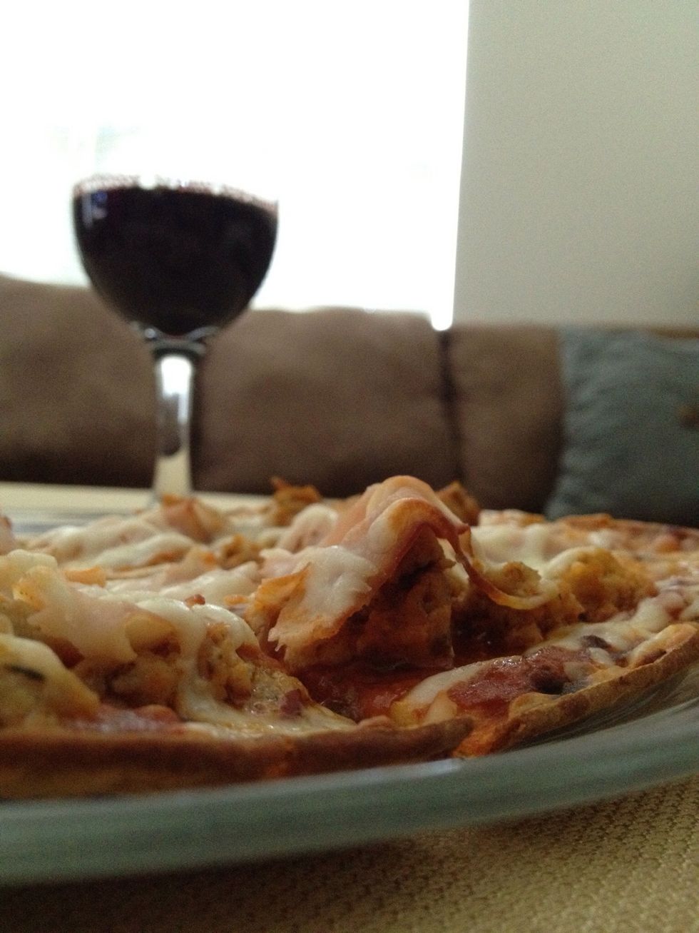 Put your pizza in the oven at 400° for 6ish minutes depending upon how you like your pizza cooked. Yes, my pizza is directly on the rack because I have no pots or pans as I'm moving this week.
