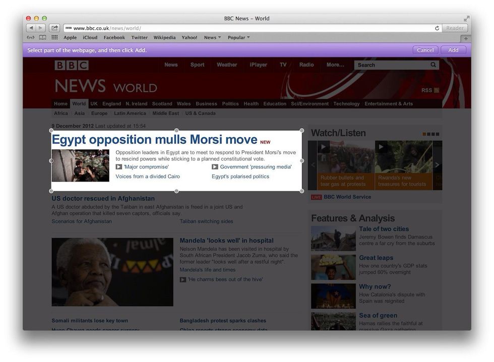 Next, click the area you want to add to your dashboard to highlight it. If the area is not perfectly highlighting the content you want, click & drag the little round handles on the edges to refine it.
