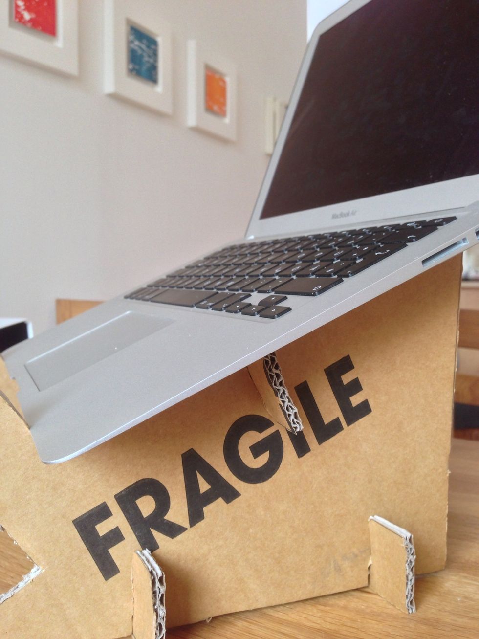 Print out the two templates from http://mashable.com/2012/10/13/cardboard-laptop-stand-diy/ on regular A4 paper.