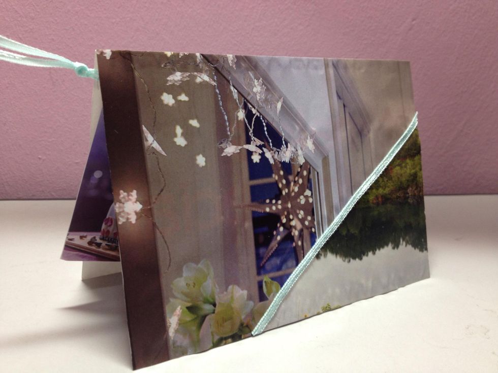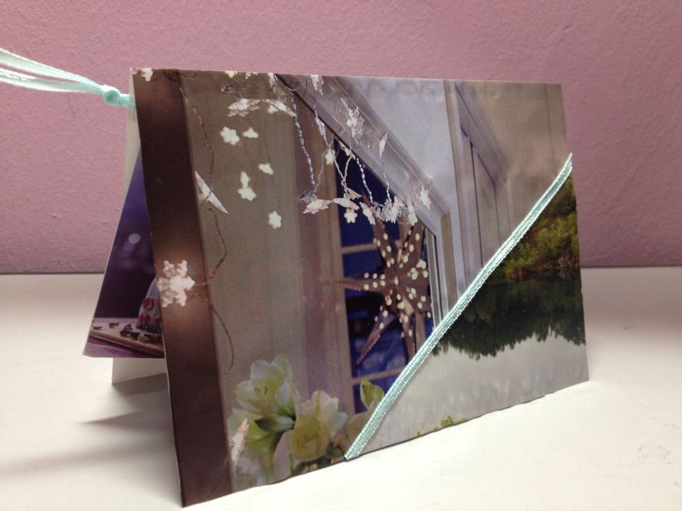 Tie through both with a ribbon, preferably the same one as the one used for the front of the card.