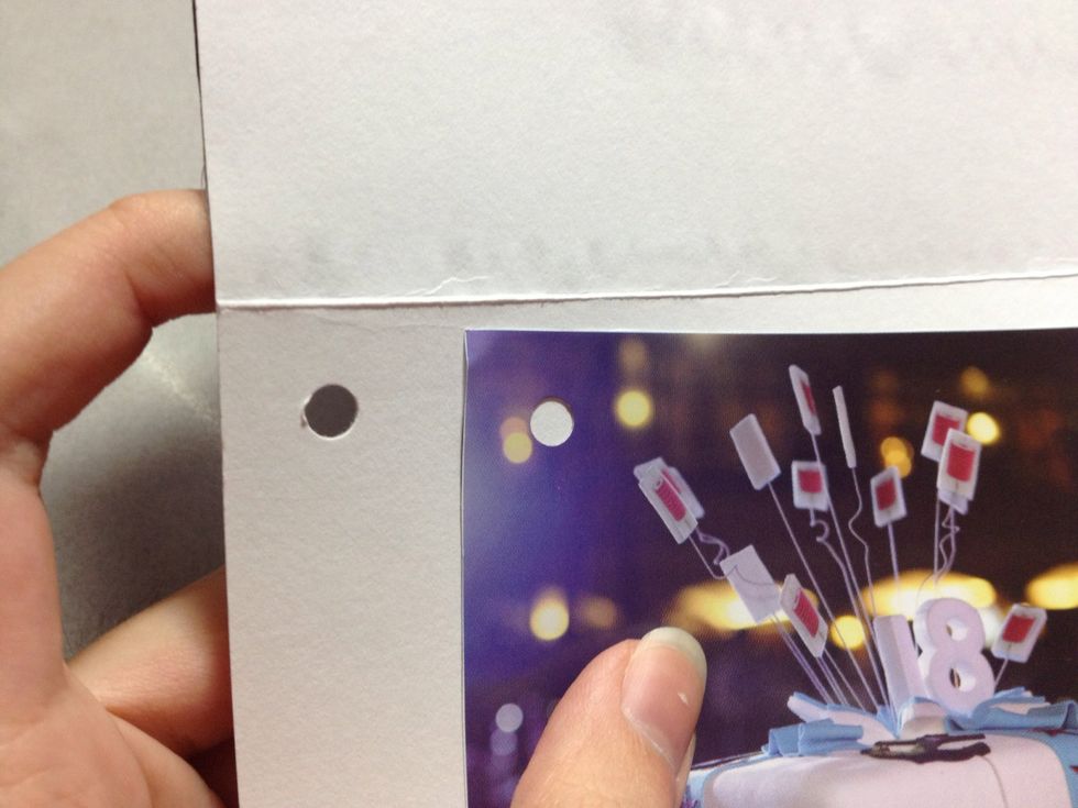 Hole punch both the inside of the card where you are going to write the message and the picture with a single hole.