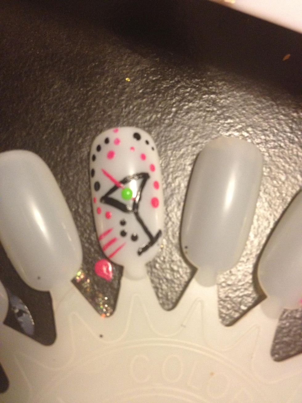 Now take a Striper, if you do not have one use a fine paintbrush, and make a pink line from the top of the olive outward, then the space between the olive and the glass, place a small line or dot :)