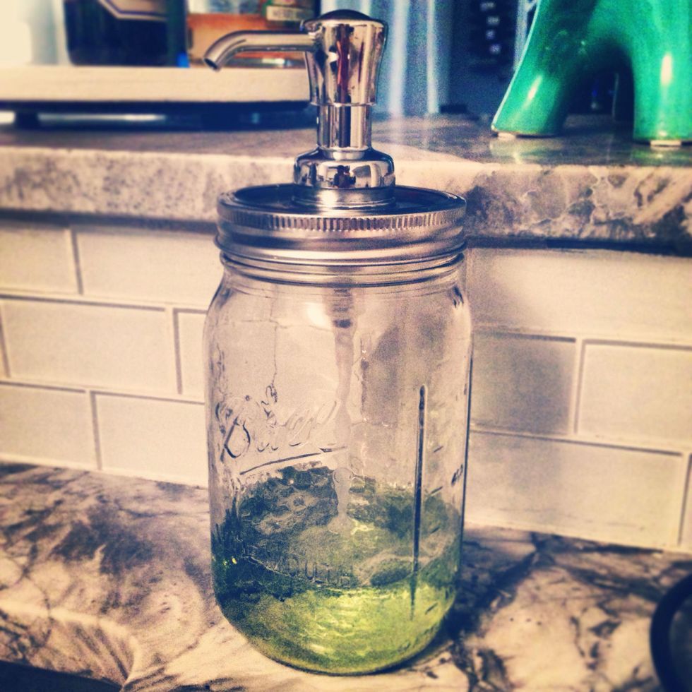 For our kitchen dish soap dispenser we used a wide mouth large mason jar!