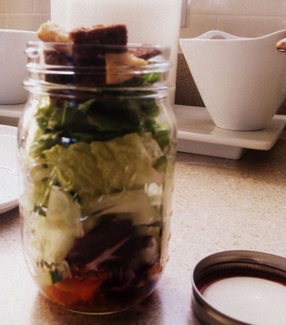 TIP: turn your salad jar upside down, pour it on a plate and all the fixings mix together with the dressing.