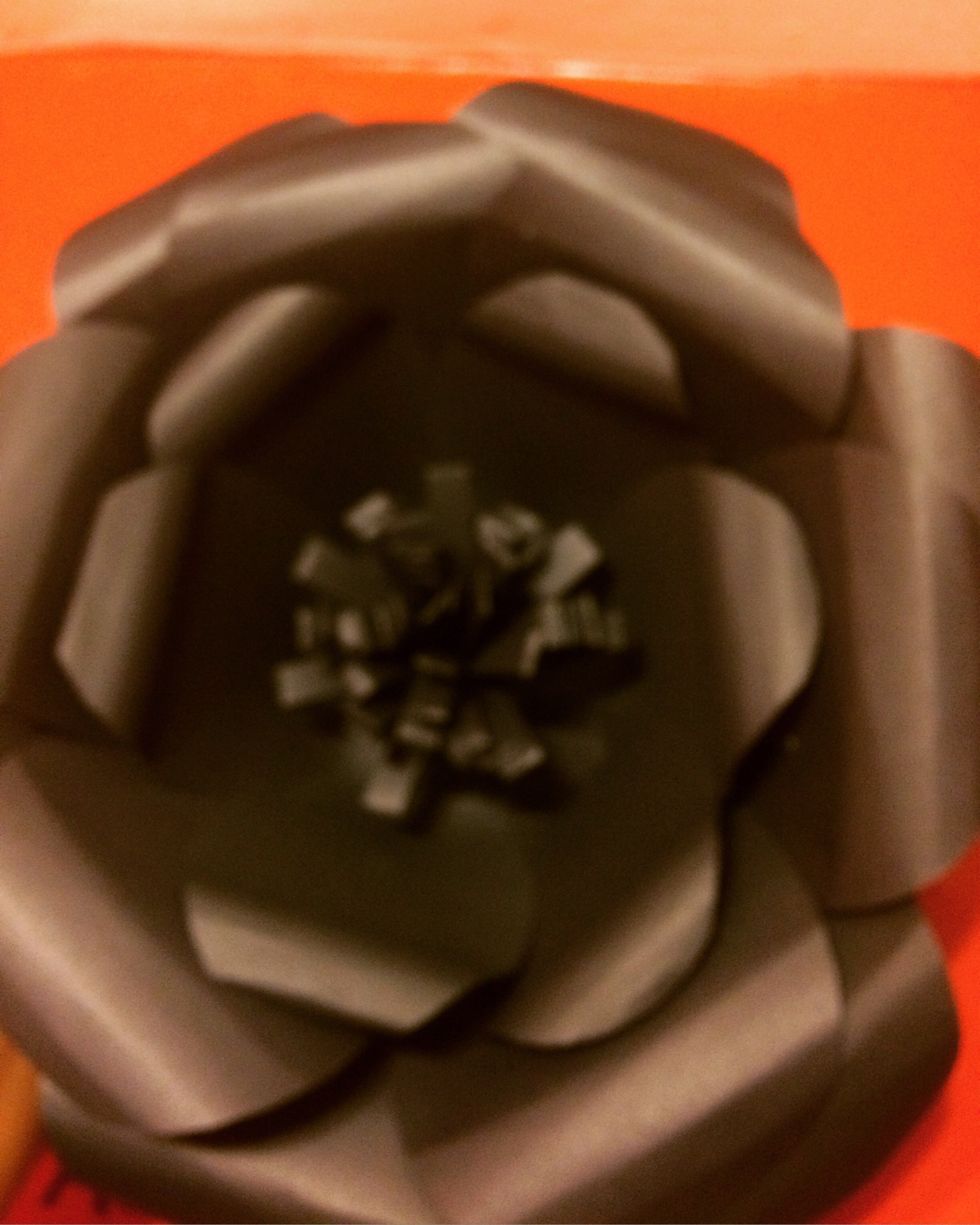 Use a scrap piece of cardstock to make a base for your flower. Hot glue the large petal bowl to the center of the base