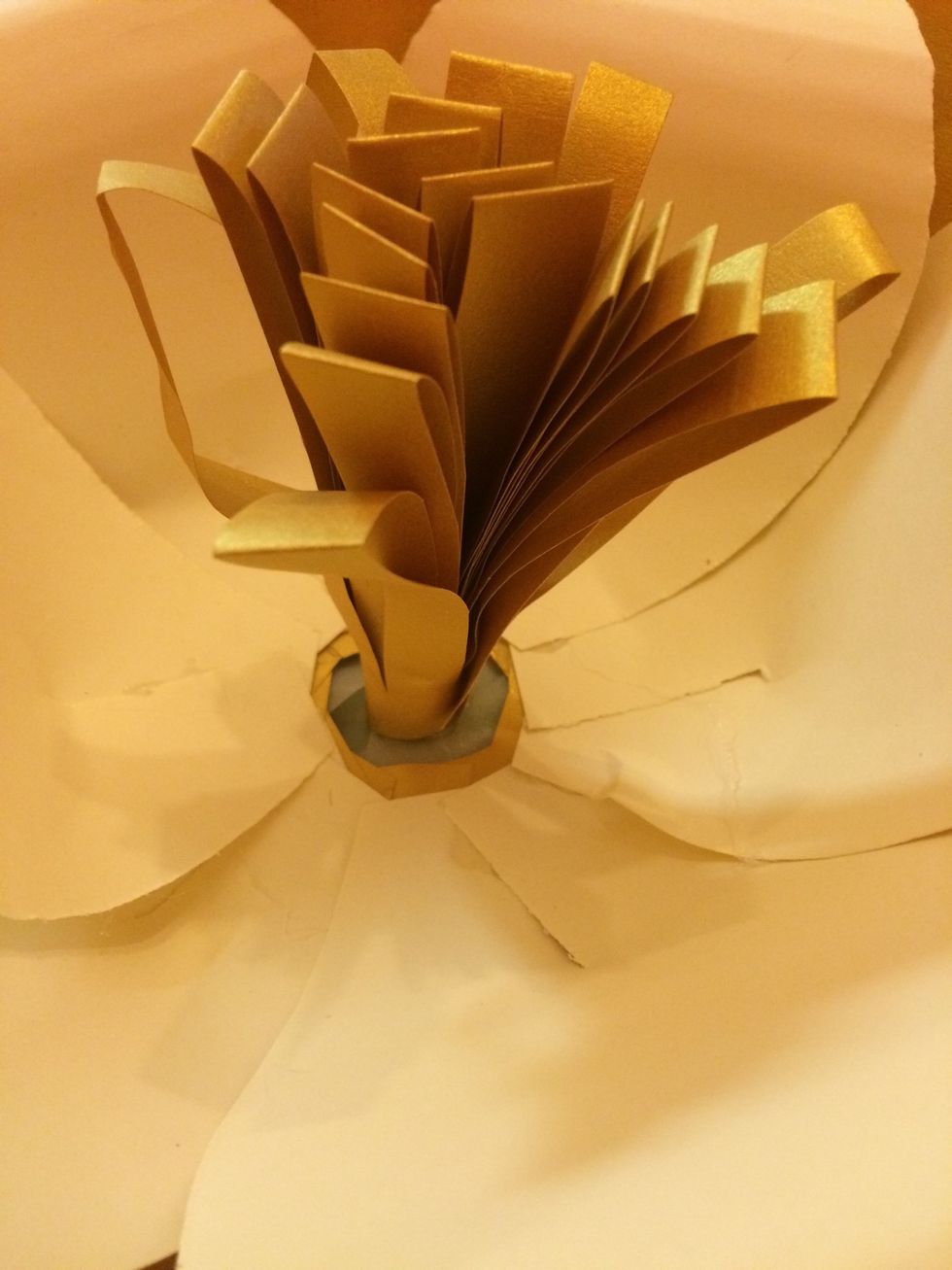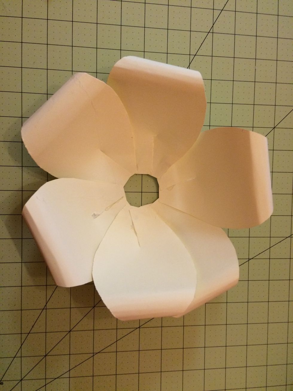 1) Your petal flipped on the opposite side 2) Place hot glue in the middle of 2" slit. Do place glue along entire slit because it will be an excessive amount of glue 3) Overlap should create a dip