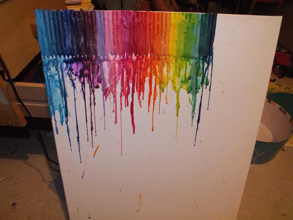 Doing each crayon individually hold the lighter up to it to melt the wax. Keep doing this until the wax dribbles down as far as you want.