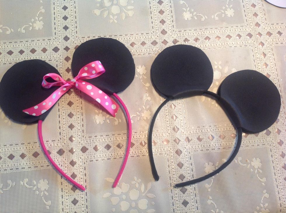Tie a bow and trim edges. I chose to use pink & purple headbands with matching ribbon for the Minnie headbands.
