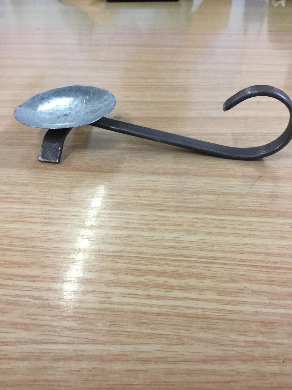 16. Then you bend the flat bar slightly with the vice and a metal hammer
