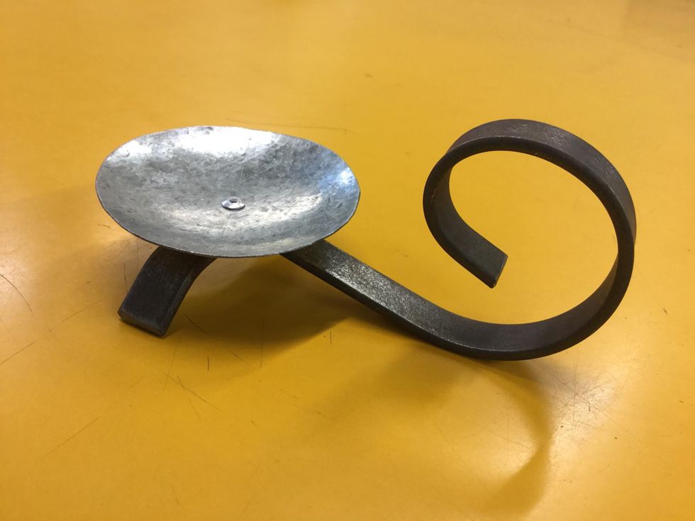 Measure 1.5 cm into the end of your scroll and make a mark into the middle of the bar. Get your centre punch and with your ballpein hammer make a mark.