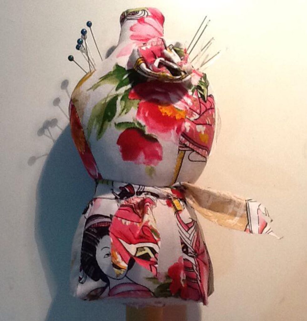 I love how mine turned out, though she's a bit of a chubby mannequin, she does the job, and the pins stay in really nicely. I'm considering adding beading around her neckline to jazz it up a bit.