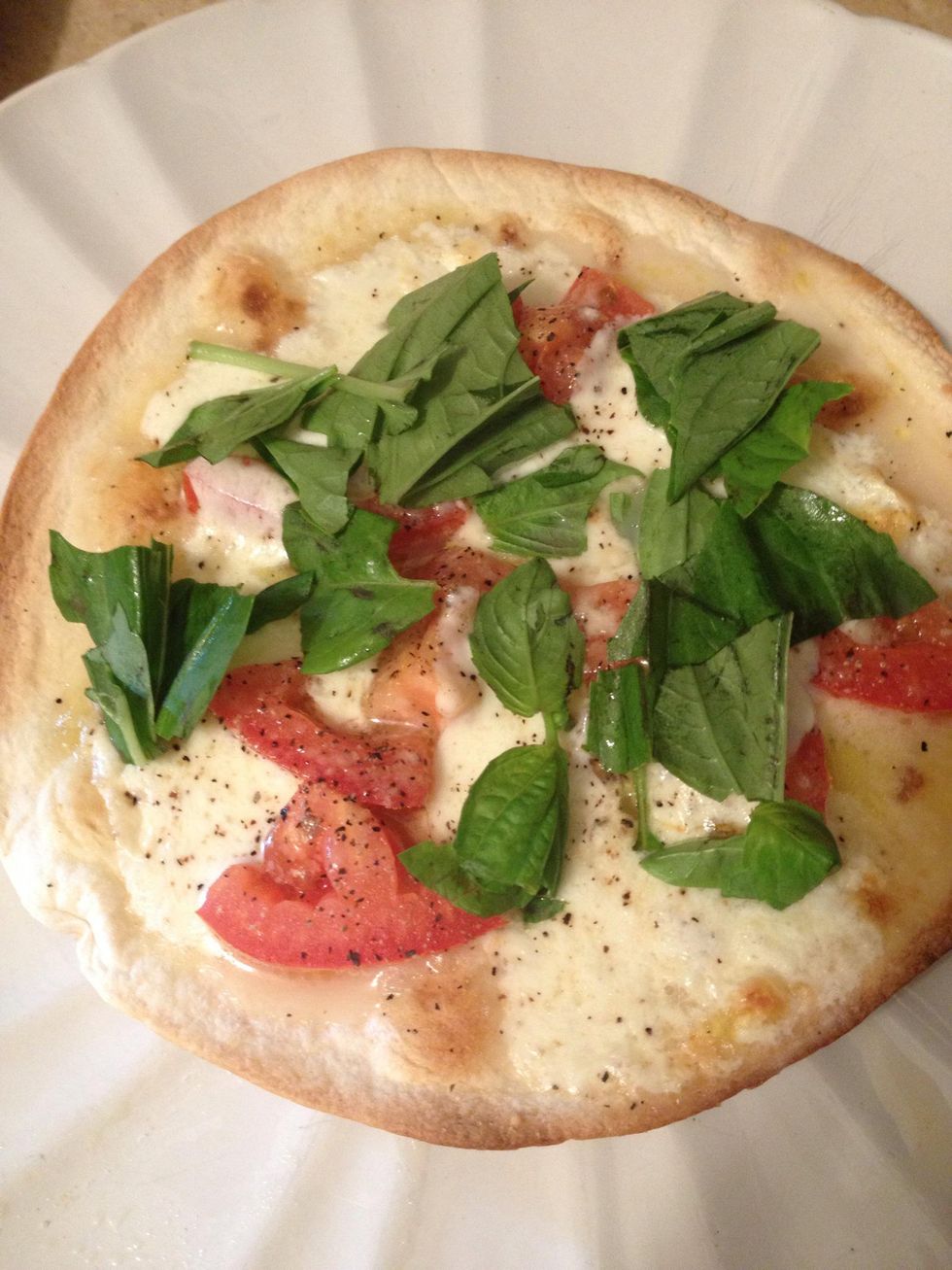 Voila!! I can usually eat about 2 of these by myself. Enjoy! Tastes just like a margherita pizza! Literally takes 15 minutes from the time you start prepping till you are ready to eat!