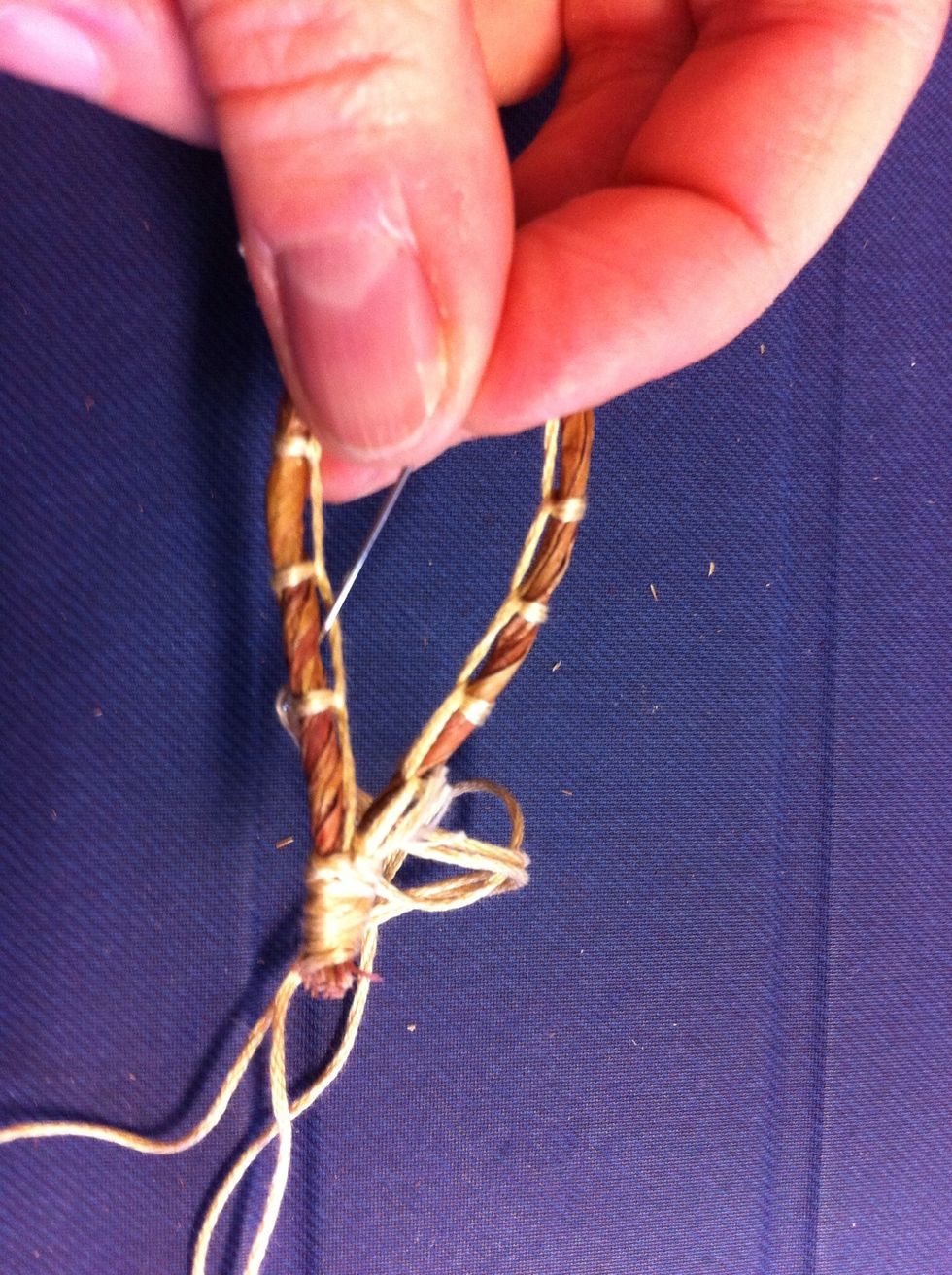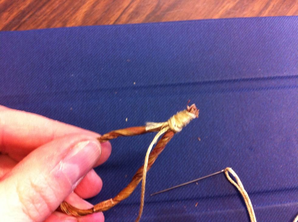 Wrap the thread around the ends to bind them together. Wrap it twelve times or so.
