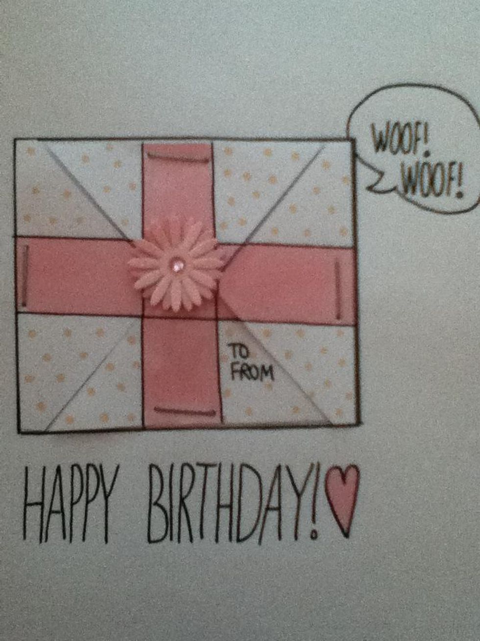 Add "to, from" and details. I wrote "woof woof" because there is a dog inside :)