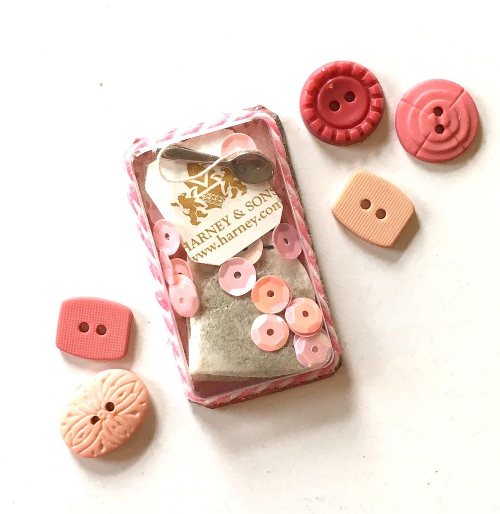 First remove the string and tag from your teabag. Trim tag down a bit to better fit a mini bag.