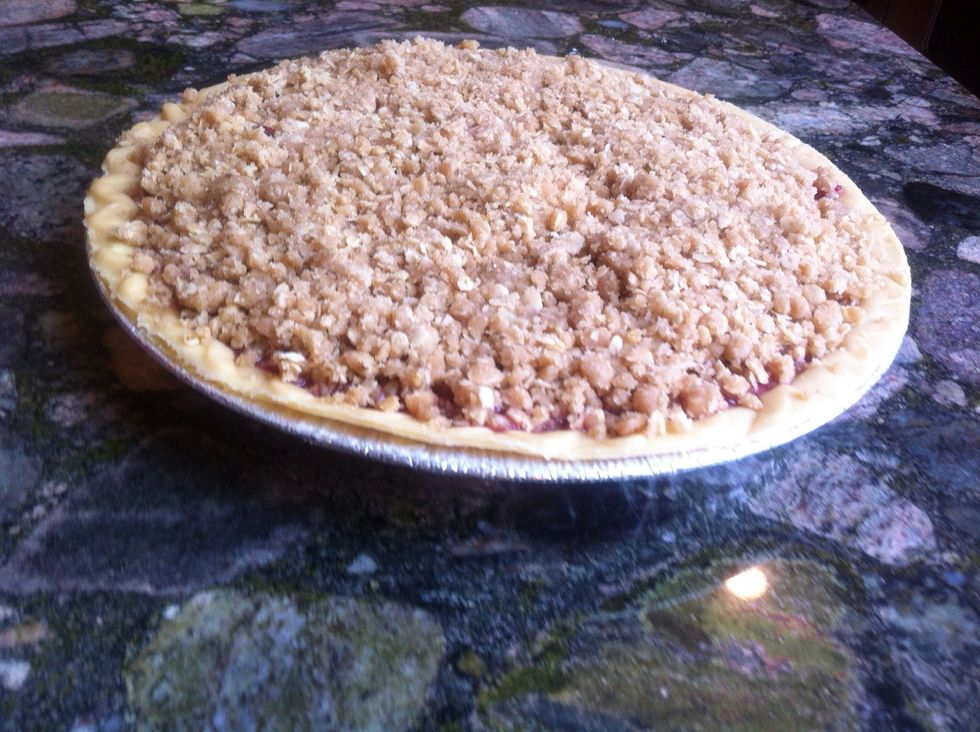 Firmly press your oats over the pie filling and put your beautiful pie in the oven temp of 450 degrees and bake for 45 minutes! Enjoy