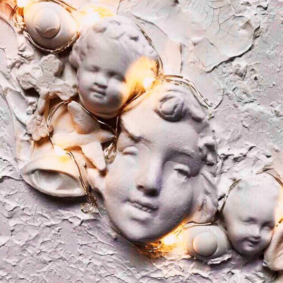 After threading the wire with the lights assemble your Relics crosswise. You'll find they tend to fit together like pieces of a puzzle! I used a pencil to outline their positions and glue down