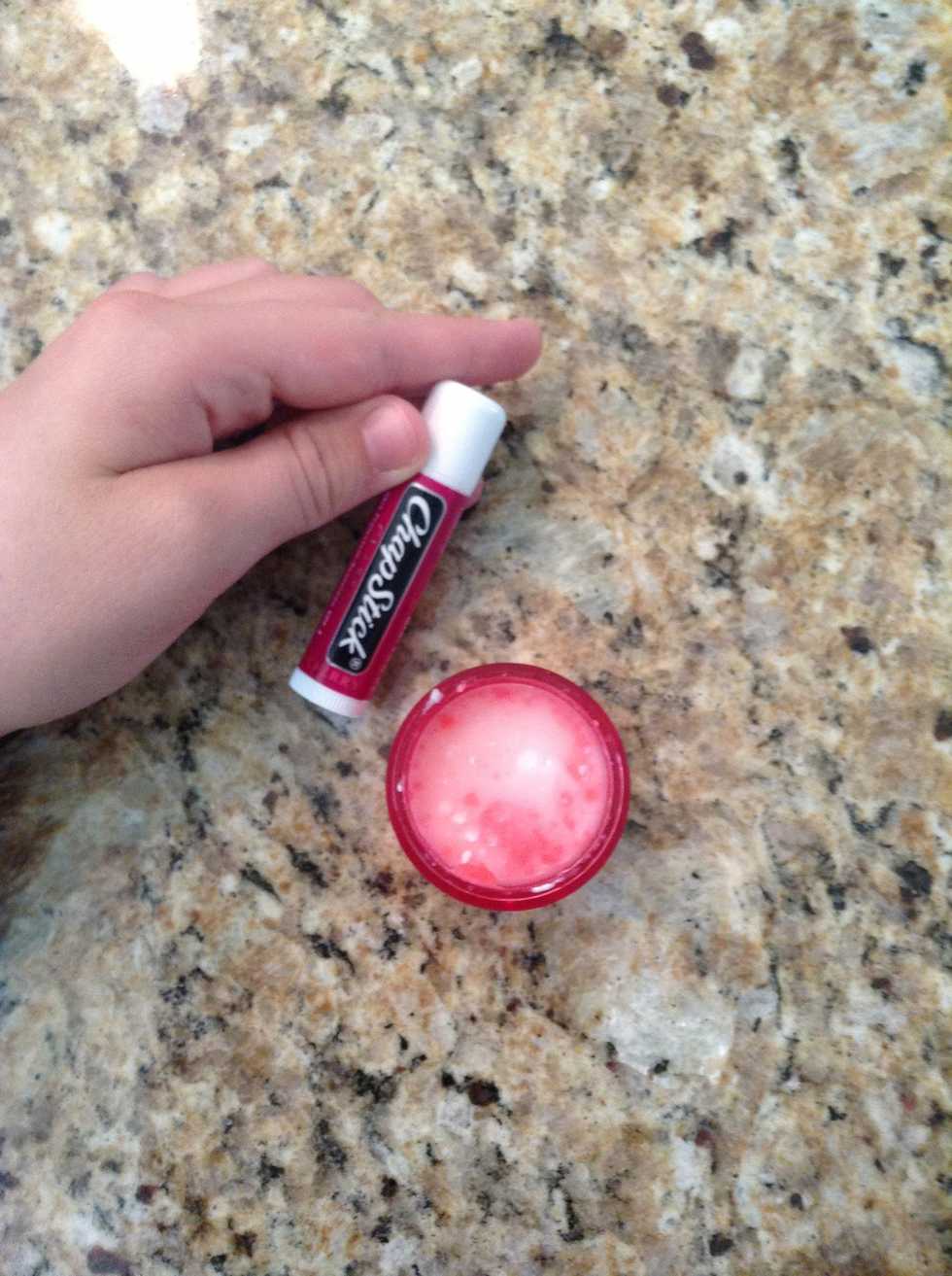 Second, melt your Chapstick. Add the slightest bit of water to the Chapstick and put it in the microwave for about 10 seconds at a time, until its melted.