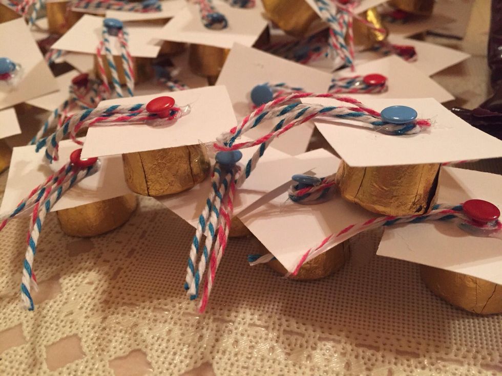 Use a dab of glue to to Rolo candy, and then attach 'mortarboard'.