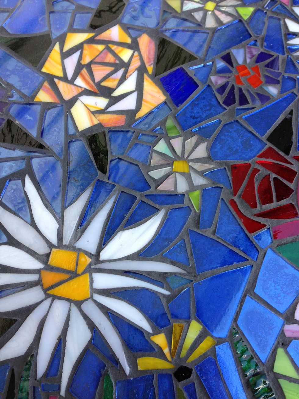 Depending on colors of glass you have and the shape of the pieces depicts what flowers or designs you can add.