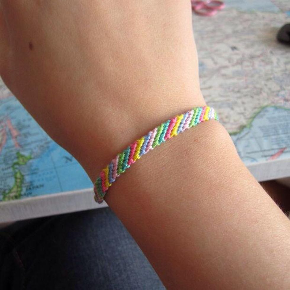 When you are done, get the loop that you made in step "2" and the end of the bracelet. Stick the end of the bracelet through the loop and tie it together.http://www.instructables.com/