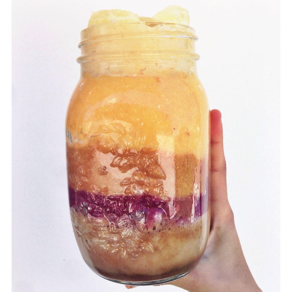 If the other mixes are too frozen mash them with a spoon before pouring in the jar. This is the banana apricot mix