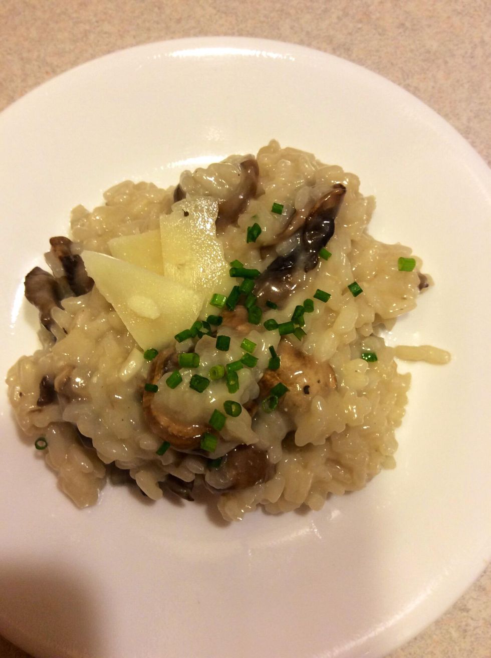 Plate the risotto by placing a heaping portion in the center of a plate and naturally letting it spread out. Top with the remaining part cheese and chives for a garnish. Bon appetite