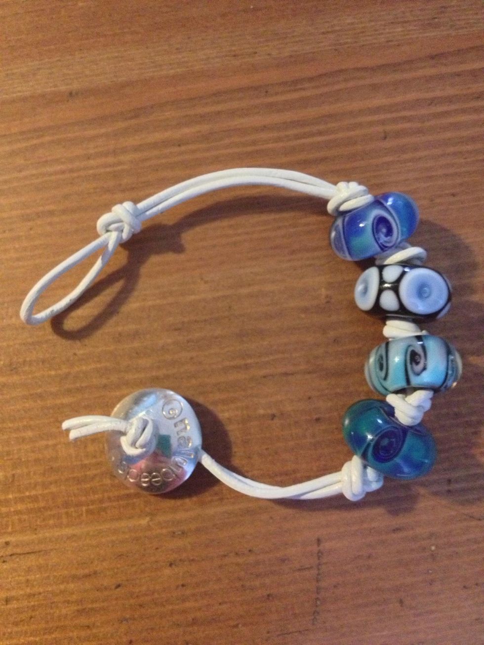 Knot another knot where you want. Put the beads on to your thong and knot. Do this for all your beads.