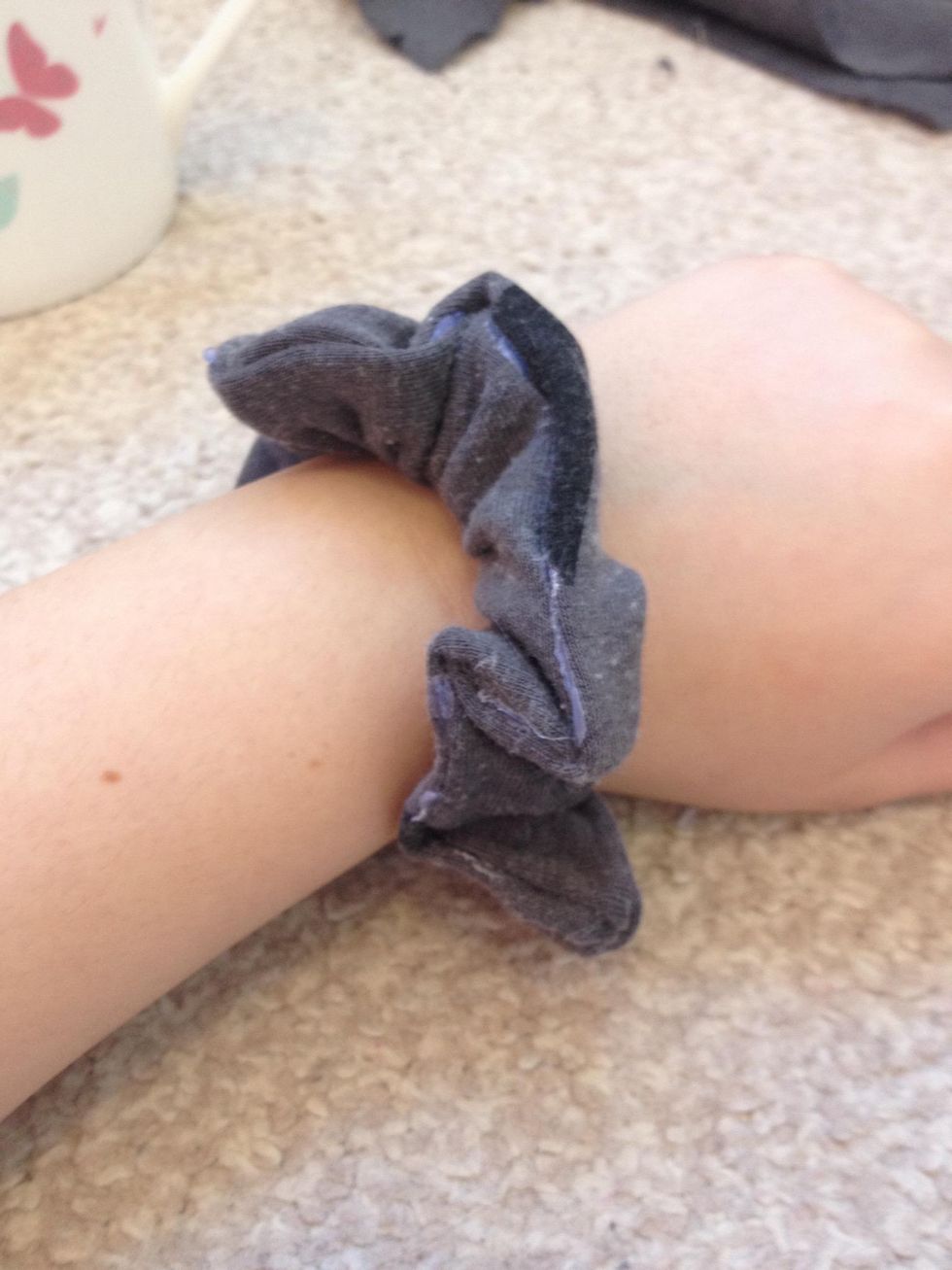 Put your loop of fabric inside-out on your hair tie in the middle.