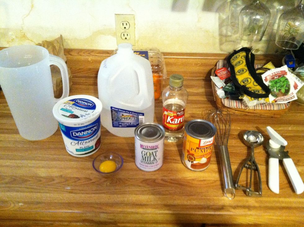 Add the cup of yogurt, if you are using the ice cream scoop it's four of them, otherwise use a cup of plain yogurt