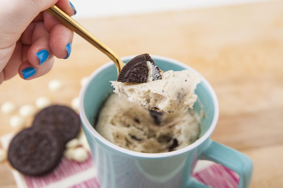 Dump your Oreo pieces into your mug cake and mix in.