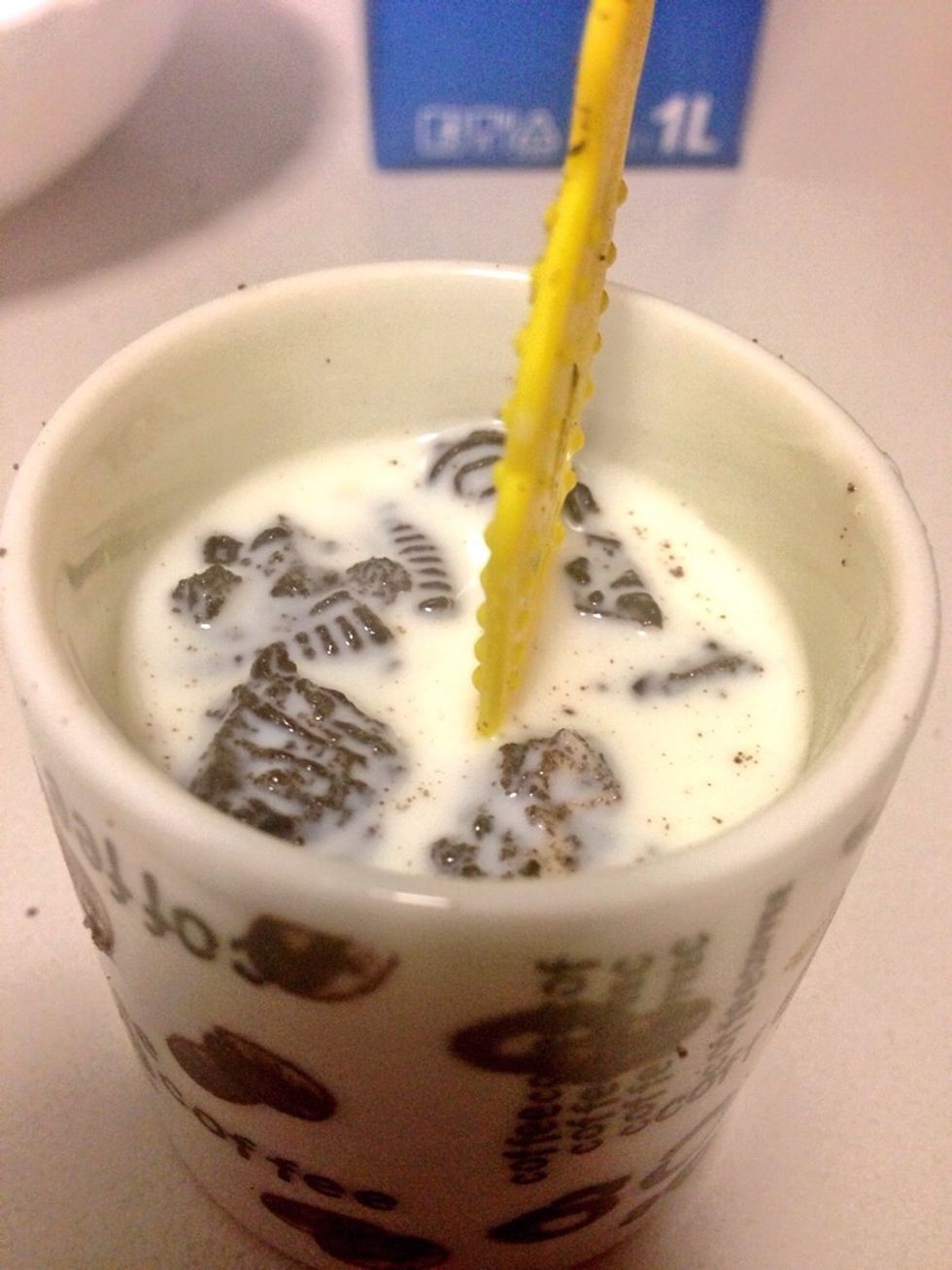 put the Oreos in the cup and you need a stick or something with is going to be the ice cream stick
