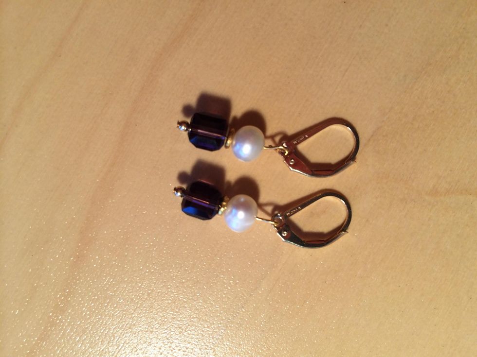 Using flat nose pliers, bend headpin to a 90 degree angle. Then slip Leverback on the pin laying against the beads.