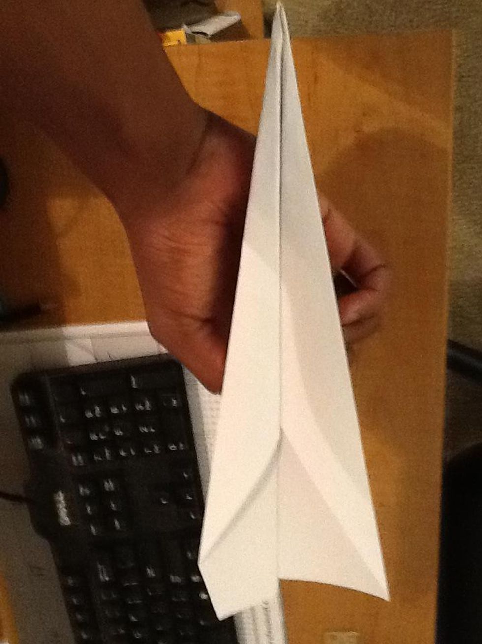 Find a piece of paperFold top corners of paper inwards about equal sizeFold top corners in half and press the sides downPress one side of the paper in meeting with other halfFold sides inwards and press down to form the airplane