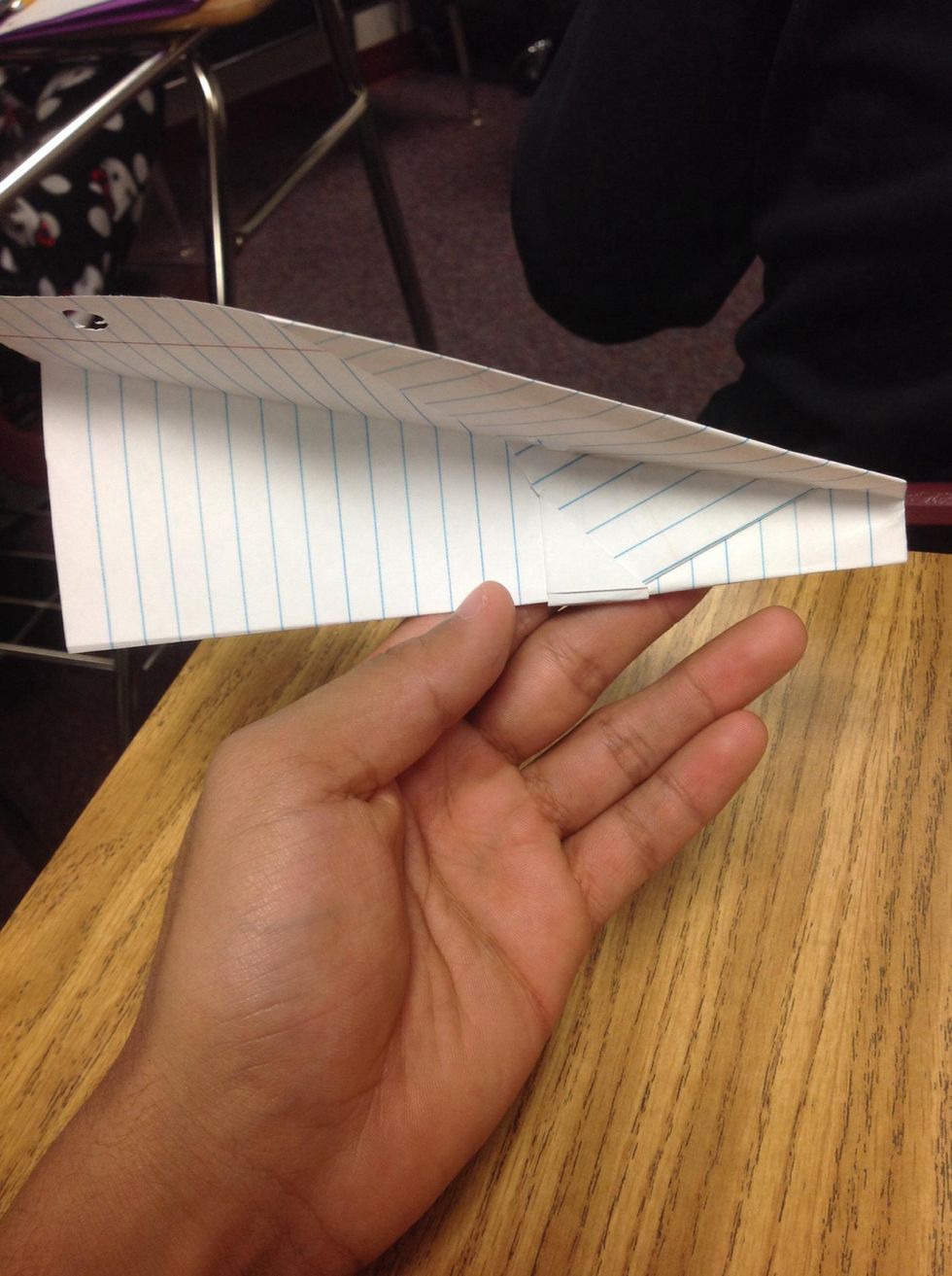 Fold one side of the wing as shown, make sure it lines up with the bottom of the plane