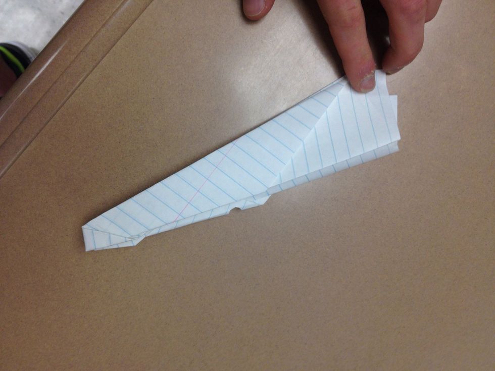 Bring the tip down to the center fold so that it's like a triangle