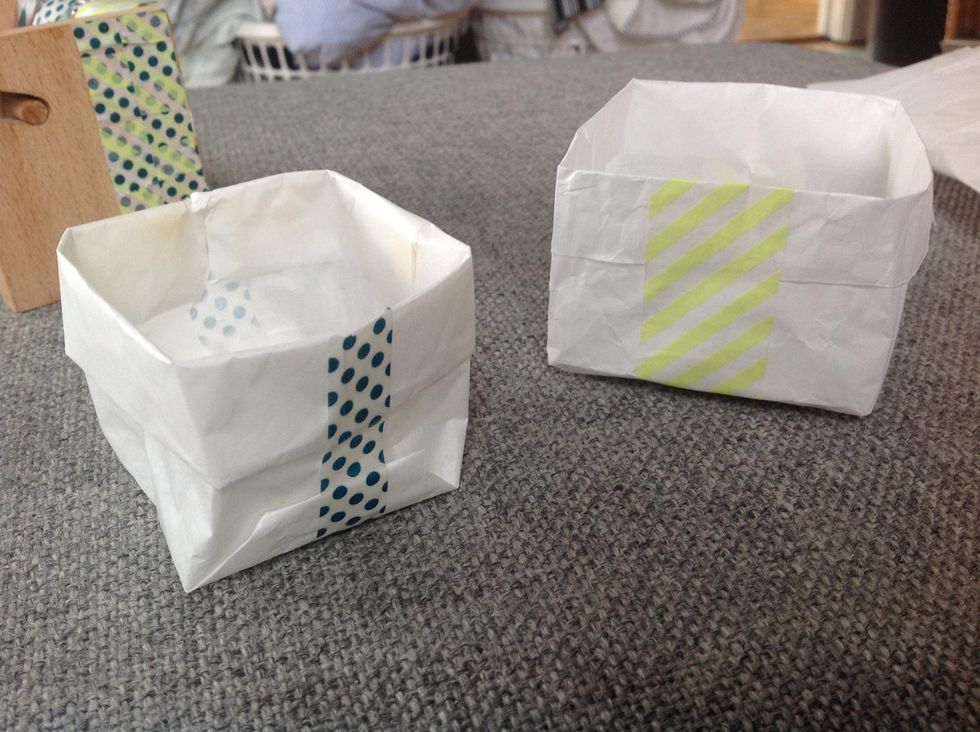 I use a little paper bag I got with a souvenir. But you can also use bigger things!