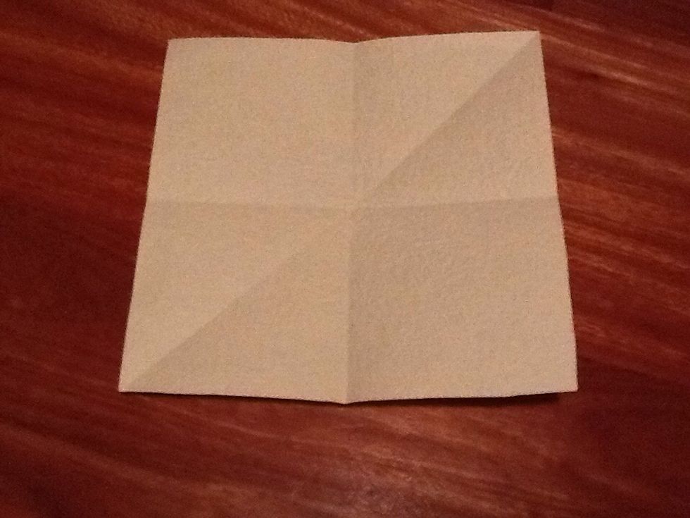 Now fold both flaps to the centre of the dimond. Flip and repeat on the other side