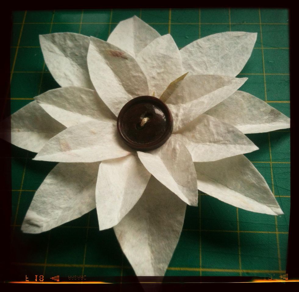 I'm using a vintage button to decorate my flower but feel free to use what you like. If using a button, place it in position and then use a needle or pencil to mark where the holes need to go.