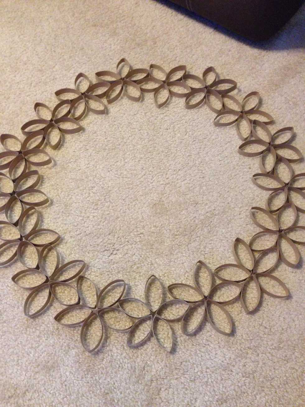 Continue that step until you have enough to form a wreath. I needed 17 flowers to make my wreath.