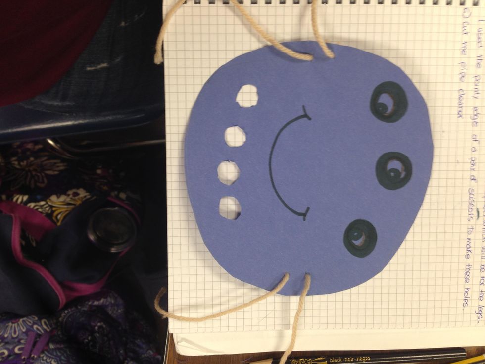 Using the one each punch, punch four holes at bottom. Some of the holes you may need to double punch a little off set to make hole a bit bigger... depending on size of child's fingers.