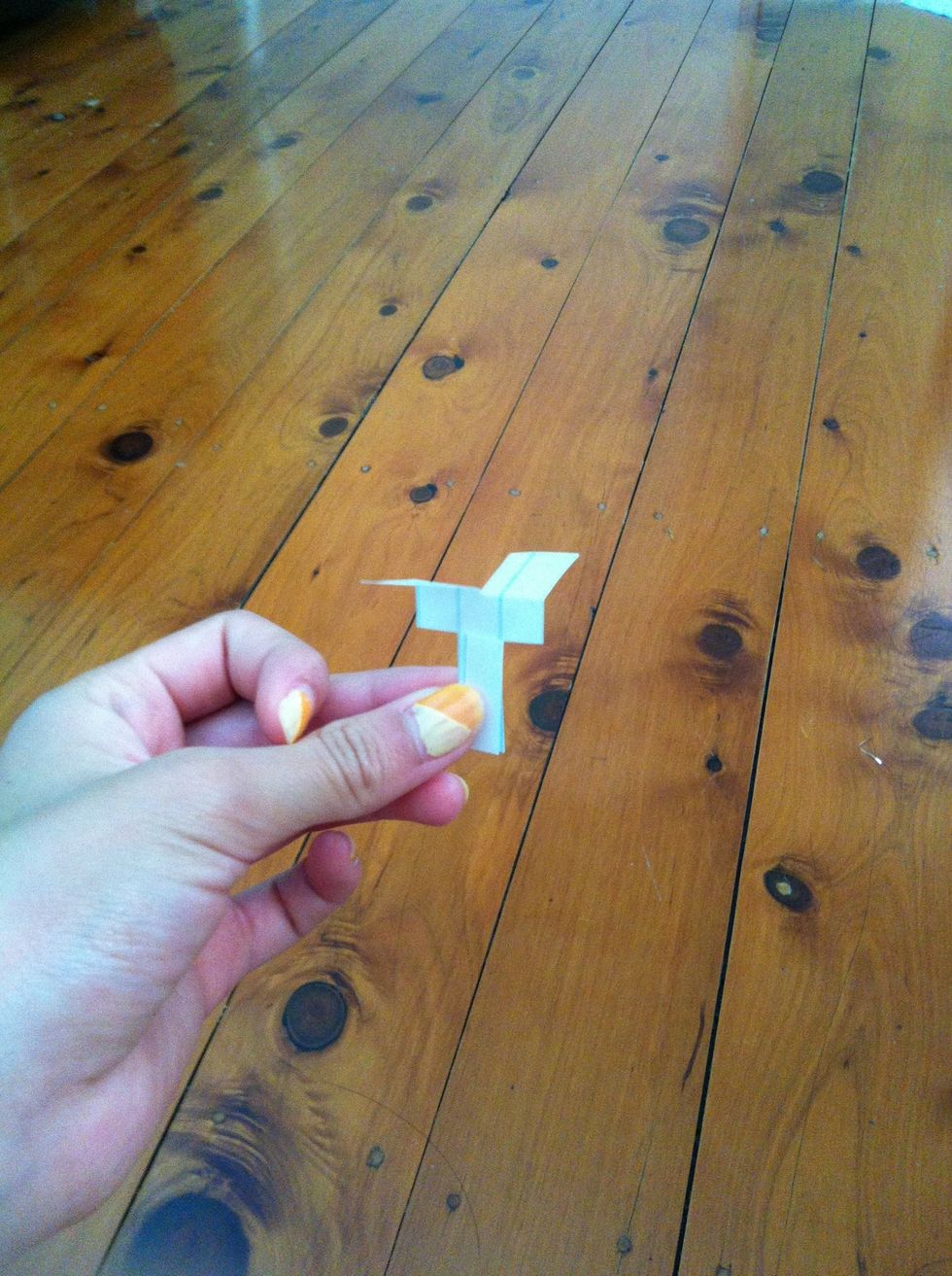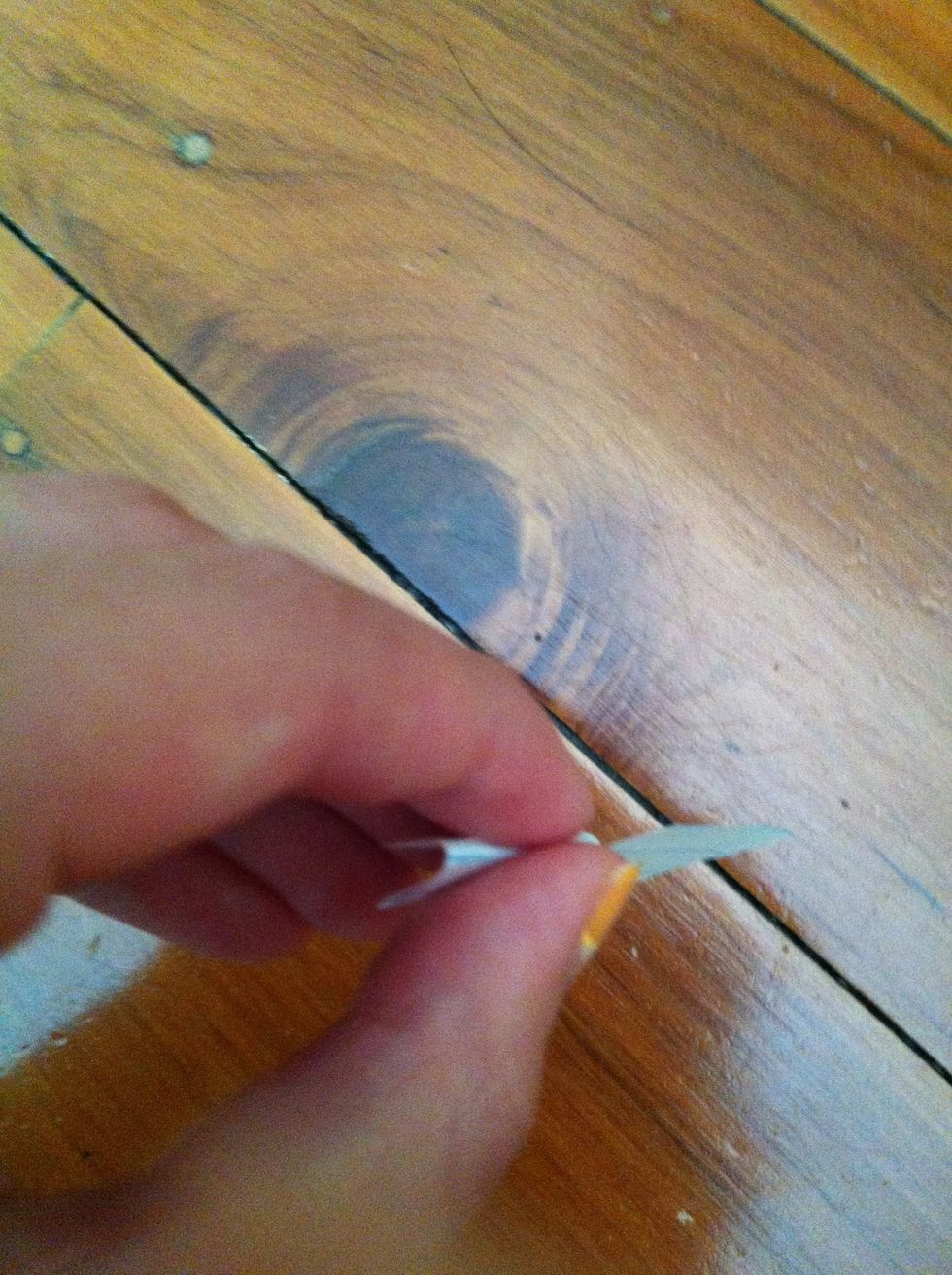 Cut a bit of paper in about this shape, if u hav lined paper then that's even better