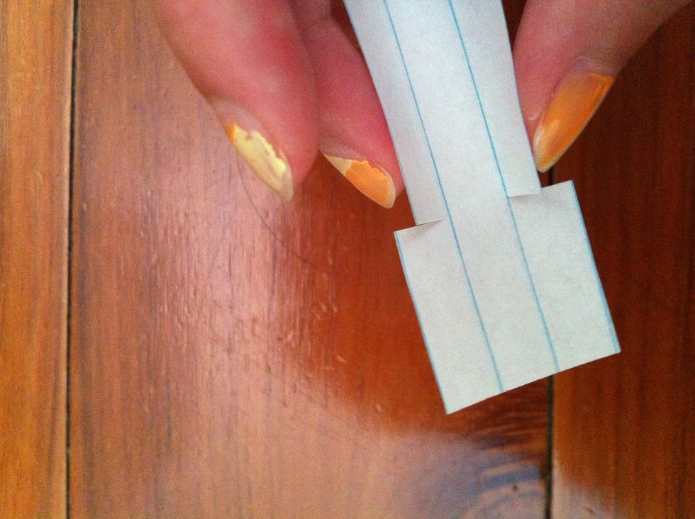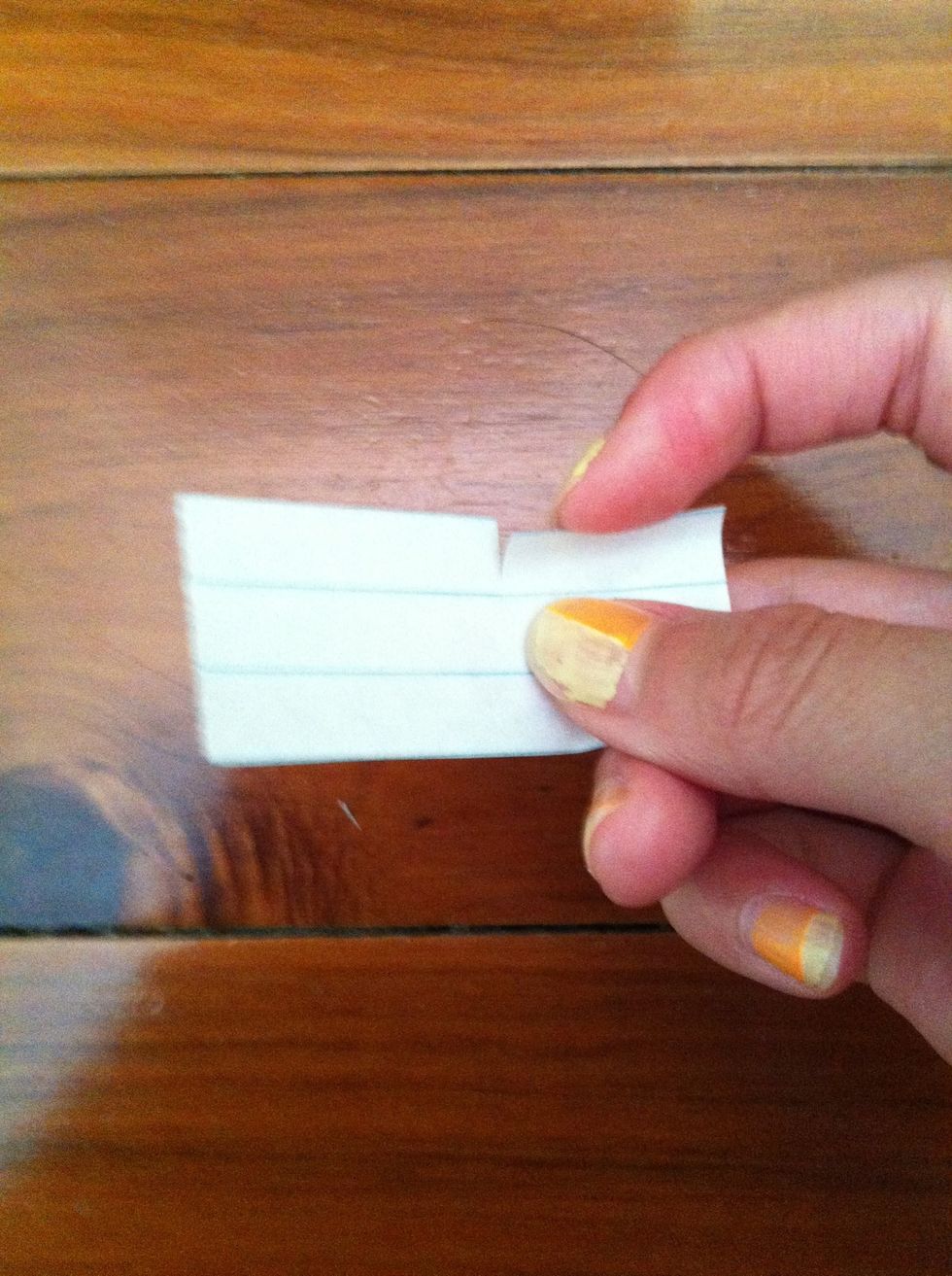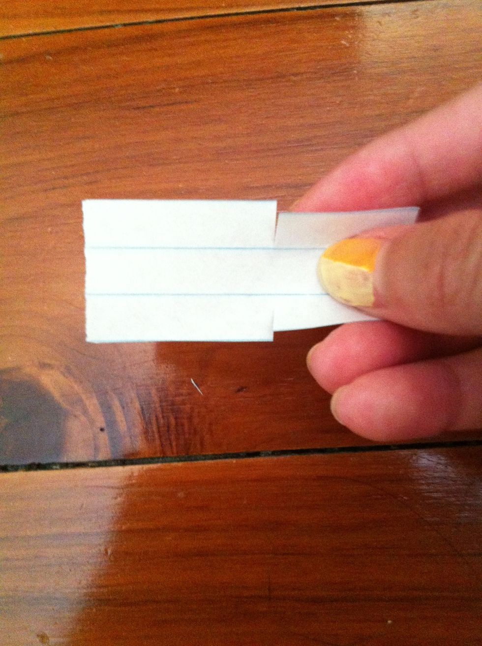 If u r using lined paper, cut it so that there r 3 lines like this (or if u want it bigger, then 6 or 9 or 12 or 15 ...)