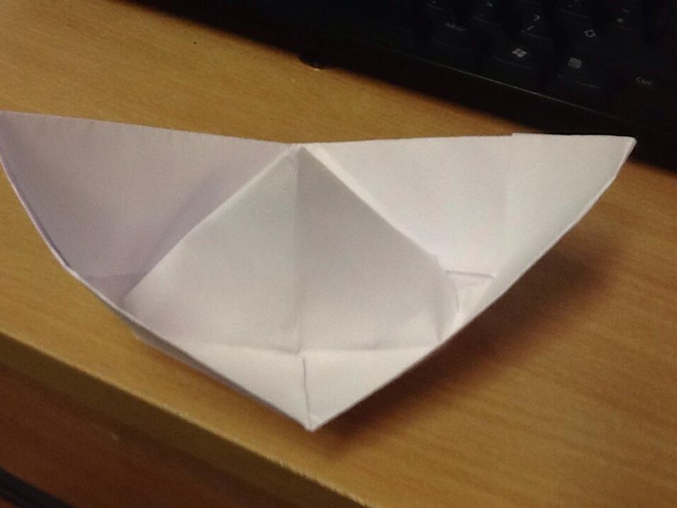 7. Next put your fingers inside and pull at the corners to make a boat.