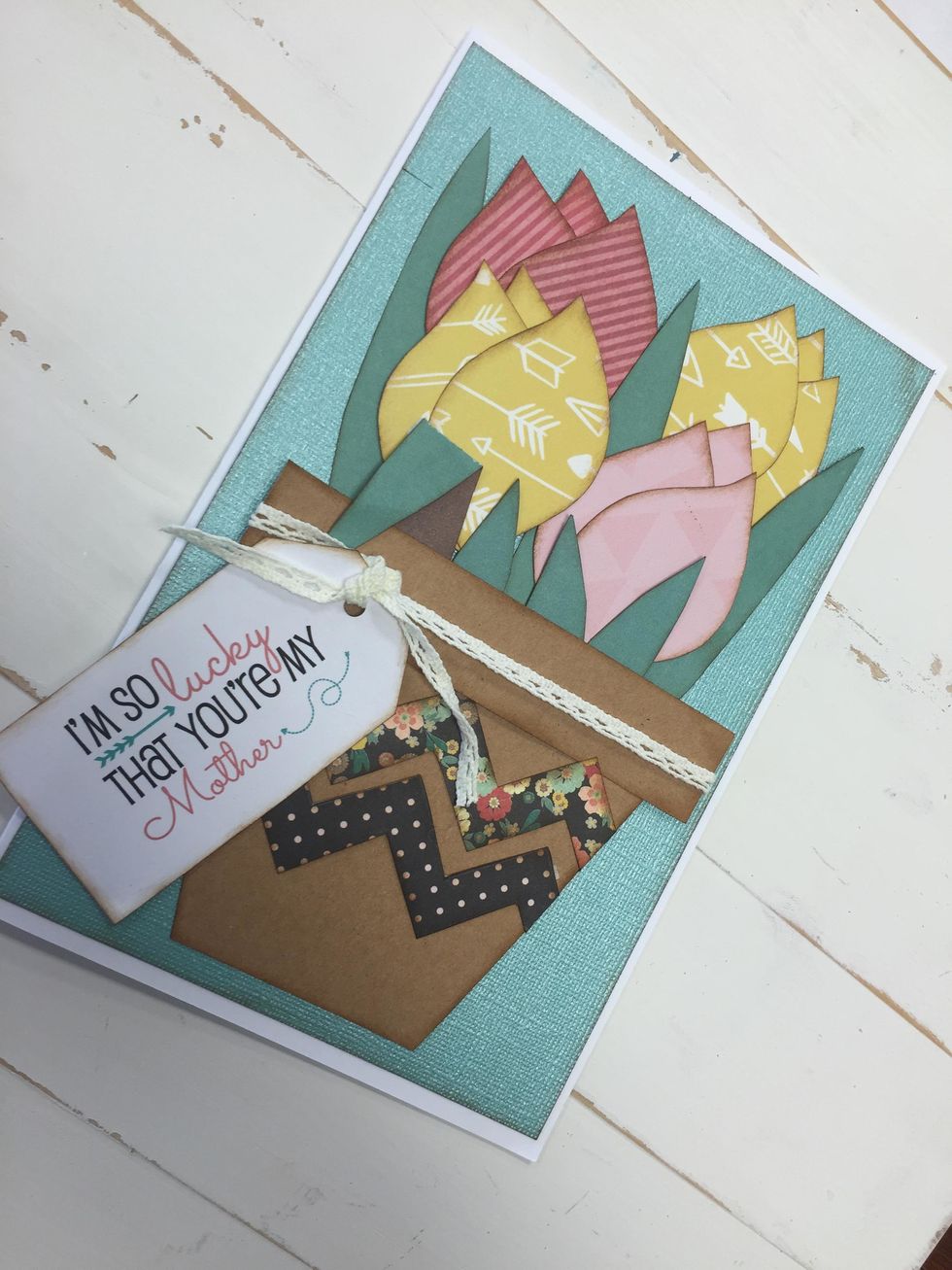 Now that we have everything we need, we are going to start adhering everything to our card base.