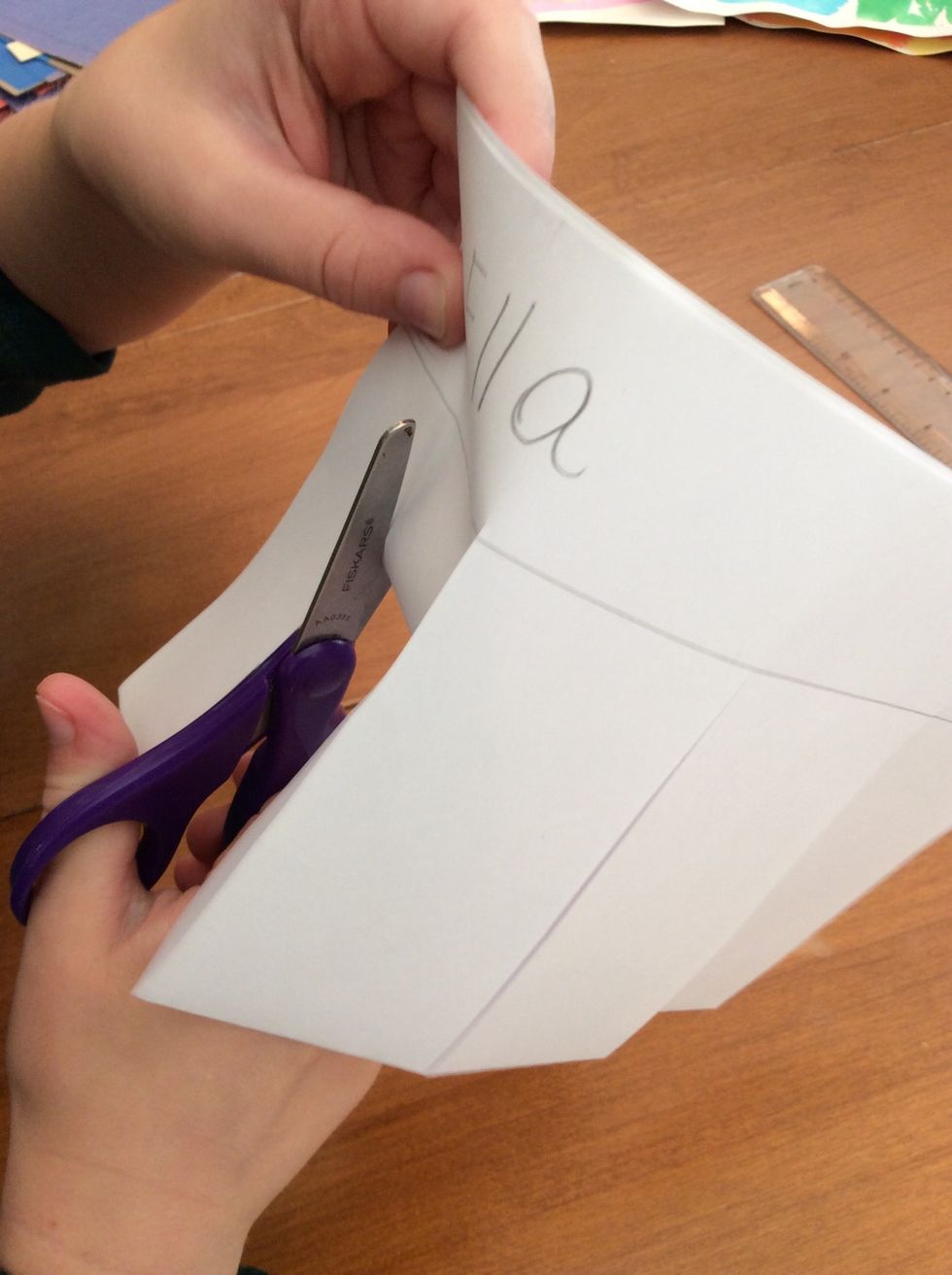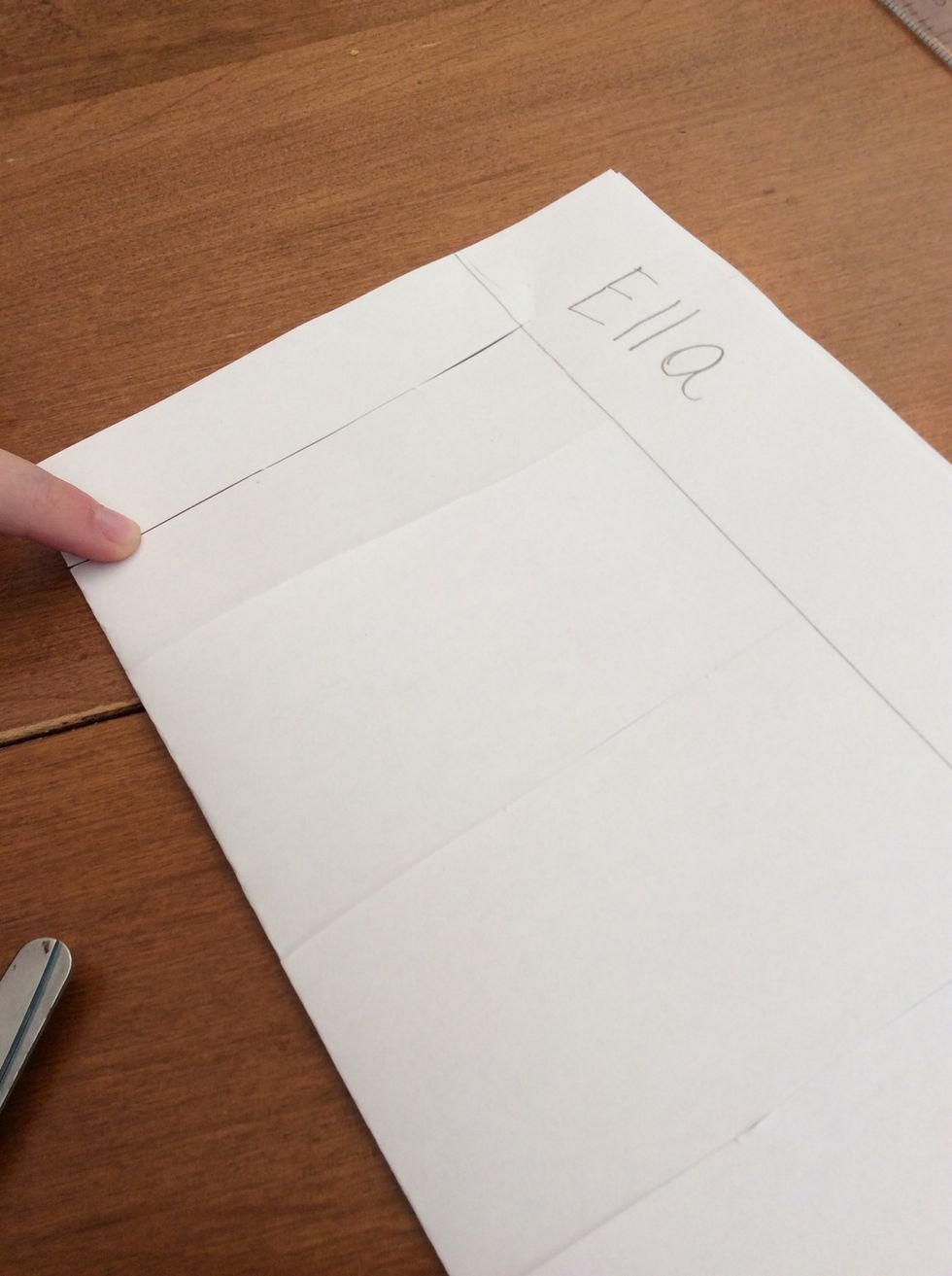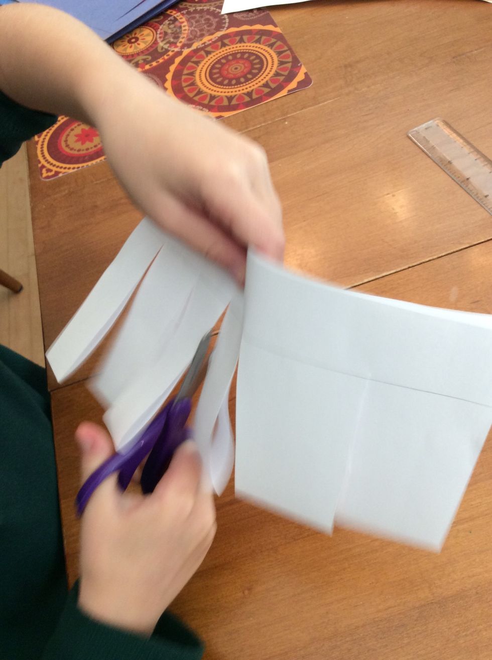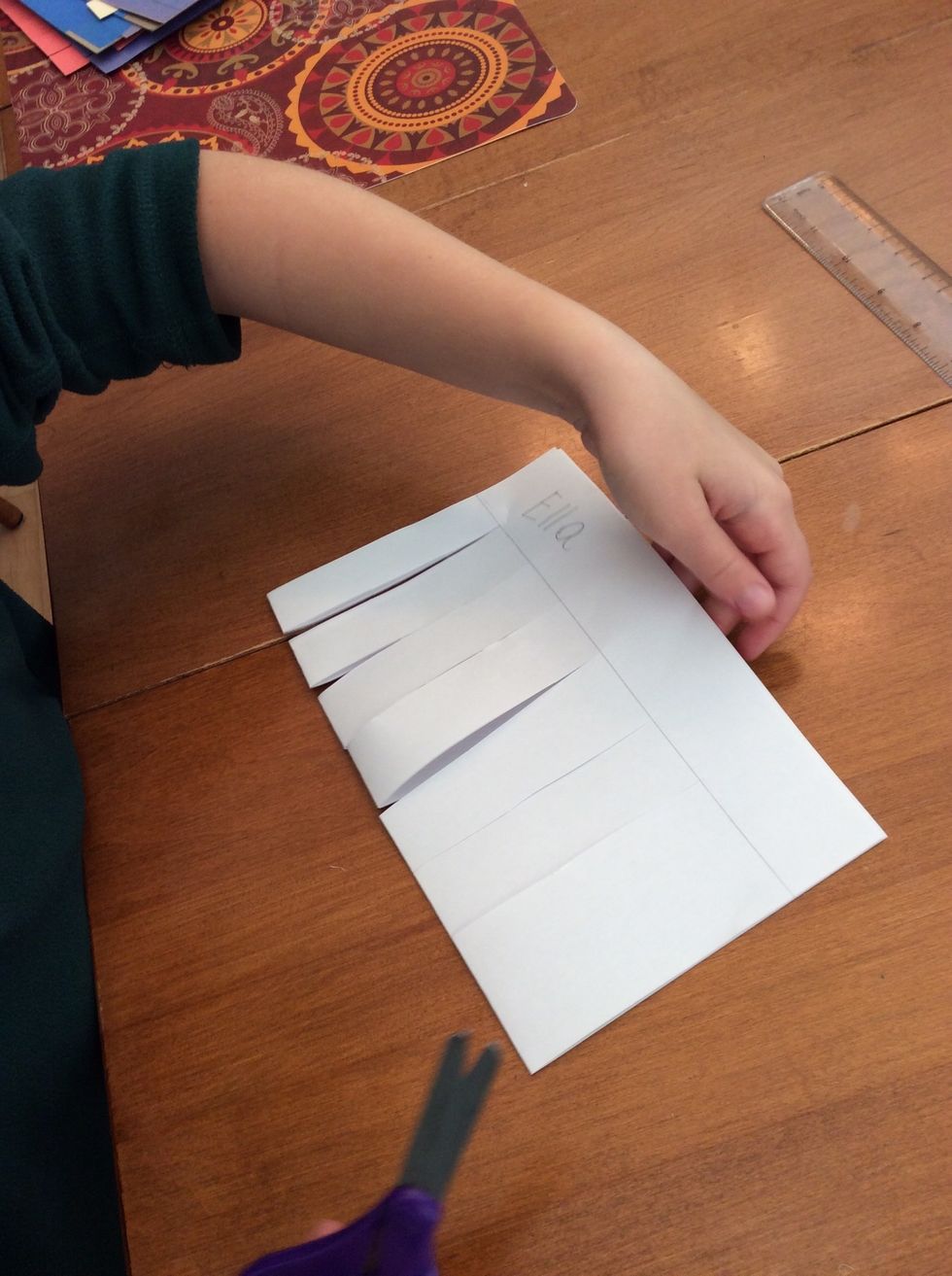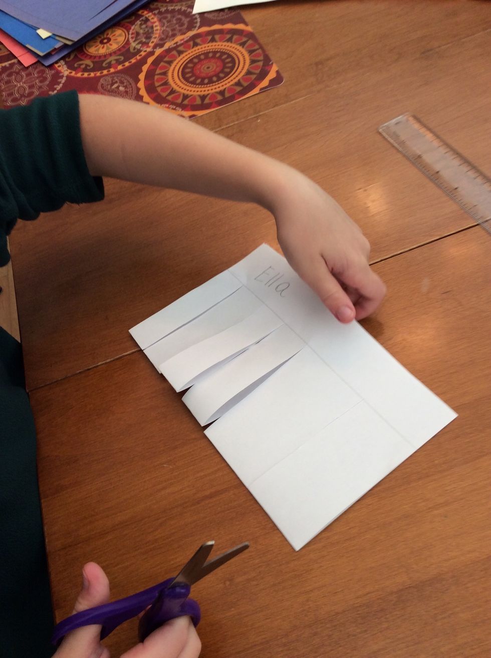 Next I unfold my paper. This is my LOOM. The lines that I cut are the WARP.