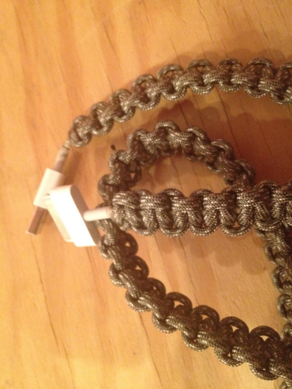 First you need to eight to nine lengths of Paracord. Just use the iPod cable as the measuring tape