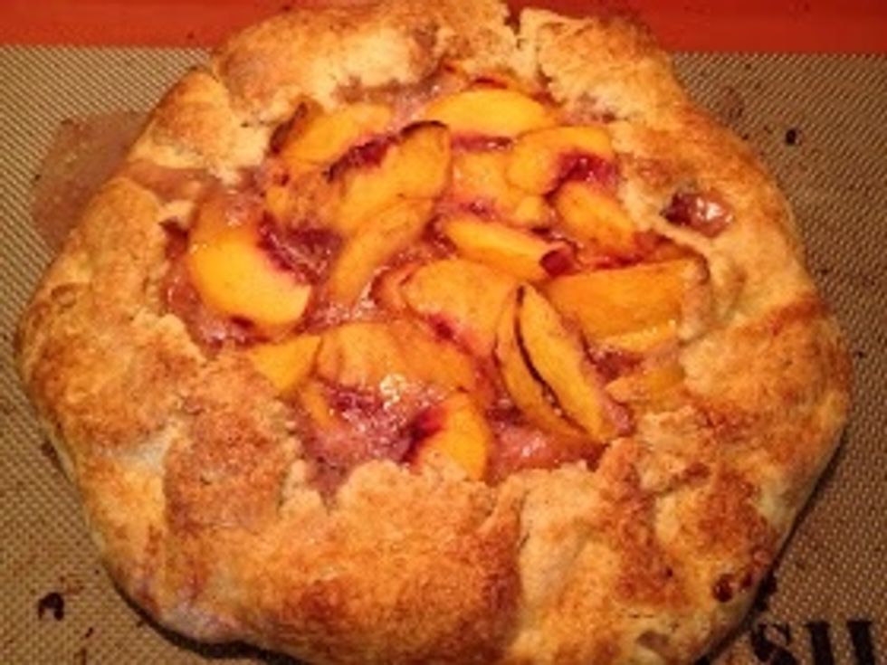 Peaches are in season and they are delicious eaten fresh or even better in this easy free form pie. You don't even need a pie dish!